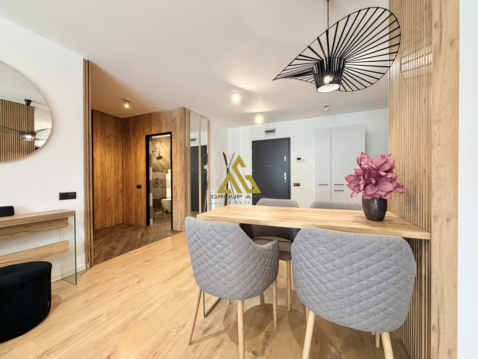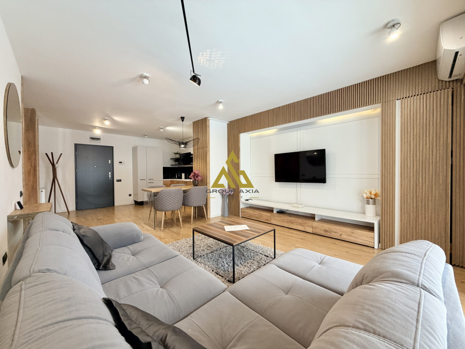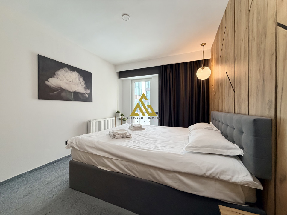 Apartamentul se ofera mobilat si utilat la standarde foarte inalte, totul fiind de calitate, beneficiaza si de balcon iar in pretul chiriei se ofera un LOC DE PARCARE IN GARAJUL SUBTERAN al imobilului.