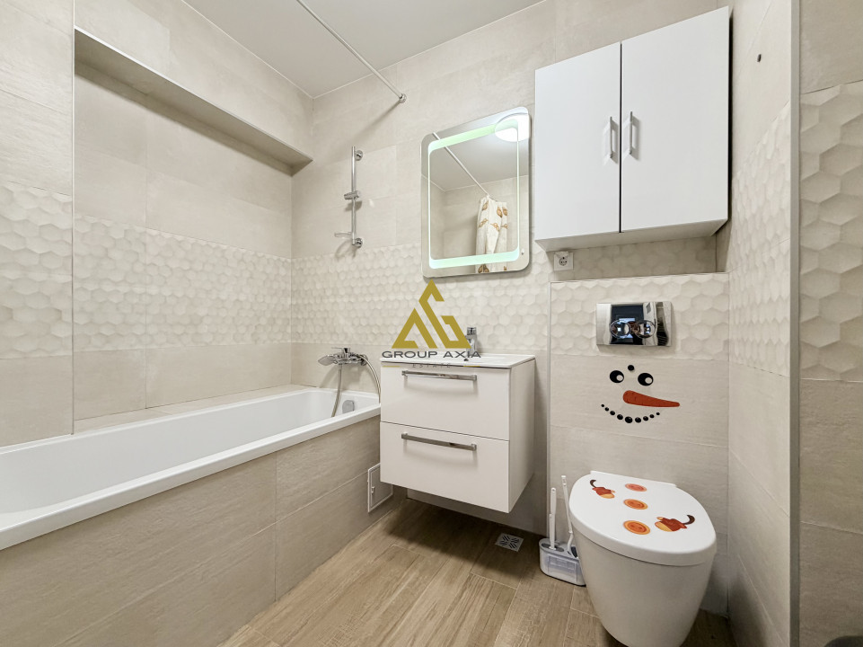 Apartamentul se desfasoara pe o suprafata utila foarte generoasa de 67 mp, se ofera complet mobilat si utilat, aer conditionat, masina de spalat vase, iar in pretul chiriei se beneficiaza de un LOC DE PARCARE IN GARAJUL SUBTERAN al imobilului.