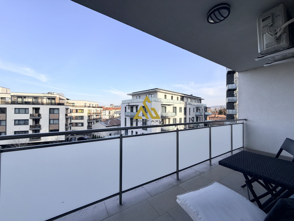 Group Axia recomanda inchirierea acestui apartament, situat intr-un imobil recent finalizat, in zona centrala a orasului, Scala Center - strada Somesului. Apartamentul face parte dintr-un ansamblu remarcabil, unde s-a pus un mare accent pe calitatea finisajelor si a confortului locatarilor. Astfel se beneficiaza de o curte comuna foarte frumos amenajata cu spatii verzi si zone recreative, iar la parterul imobilului exista un supermarket Mega Image, salon de cosmetica, patiseria Iris Delice, restaurant si altele.
